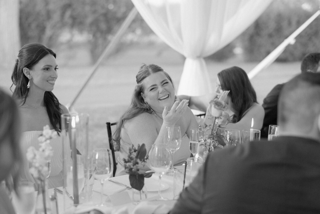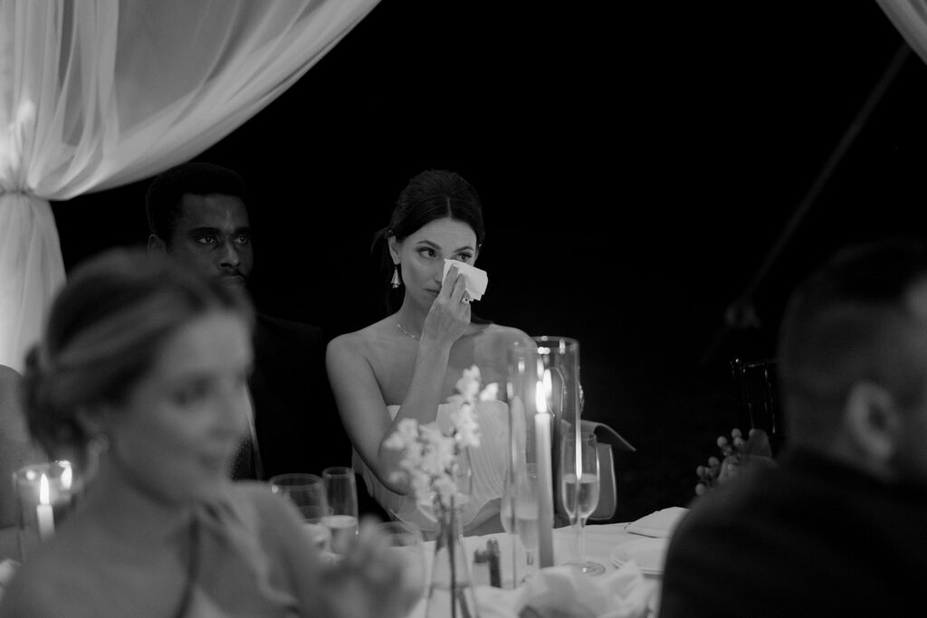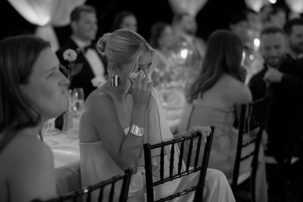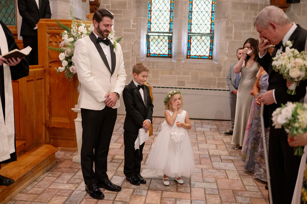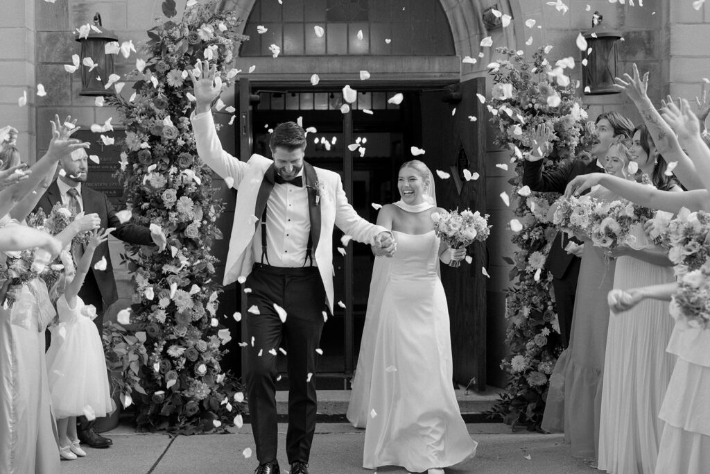The ceremony took place at a small church in Oak Park, and the reception took place at Oak Park Country Club. While some may see a country club wedding and think stuffy ballroom and golf course photos, Mary and Miles opted to pitch a sail cloth tent at the club and it was perfect. If you know me, you know I am a big tent gal and had my own sail cloth tent wedding in 2024. There is something so dreamy and ethereal about a wedding reception under a tent. It makes me so happy that I have several tent weddings in 2026!
